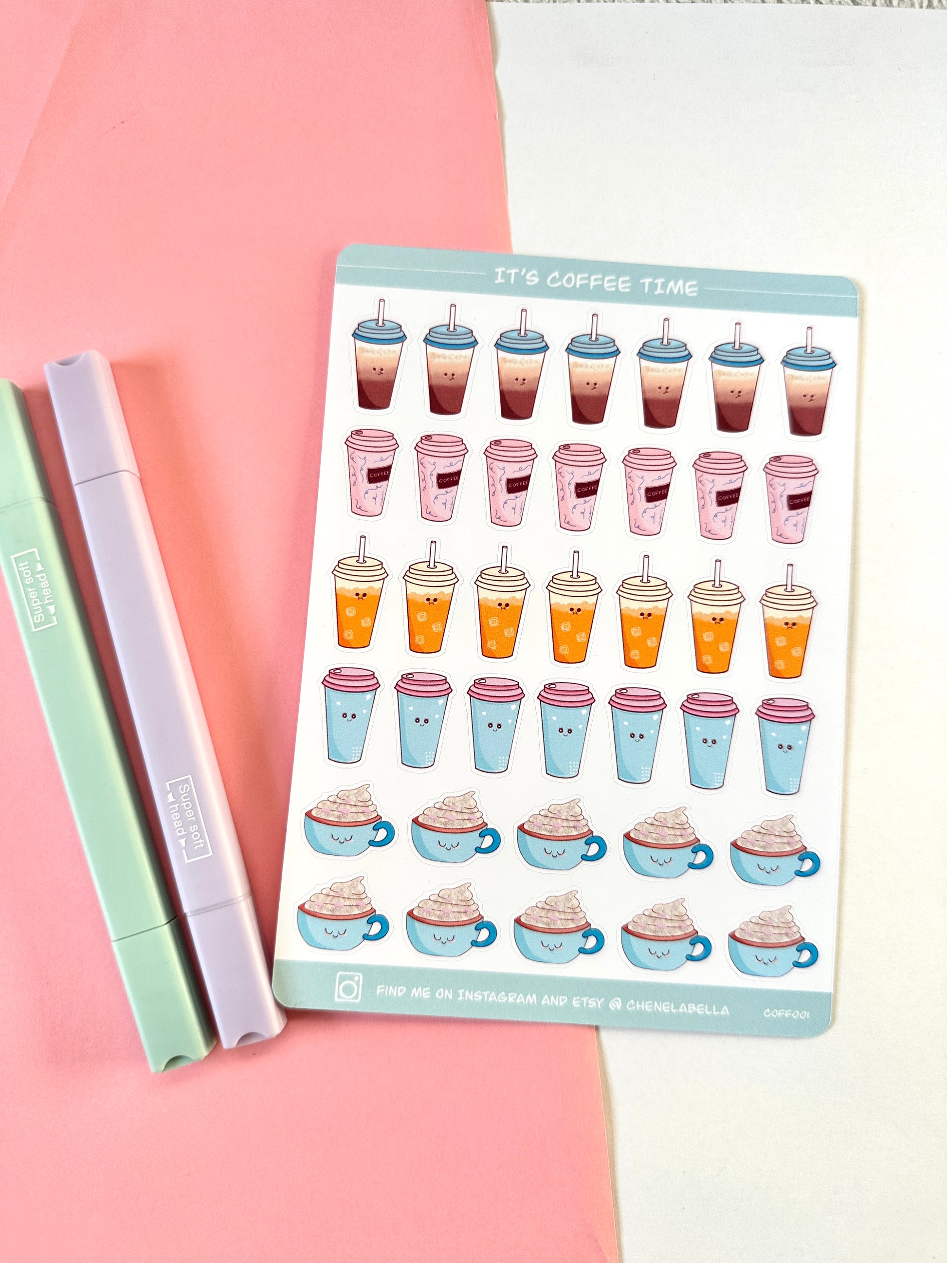 Decorate your planner, calendar or notebook with this gorgeous, pretty, kawaii style drinks sticker sheet. Perfect gift for coffee lovers and stationery lovers. Perfect for decorating your notes, calendars and journals.