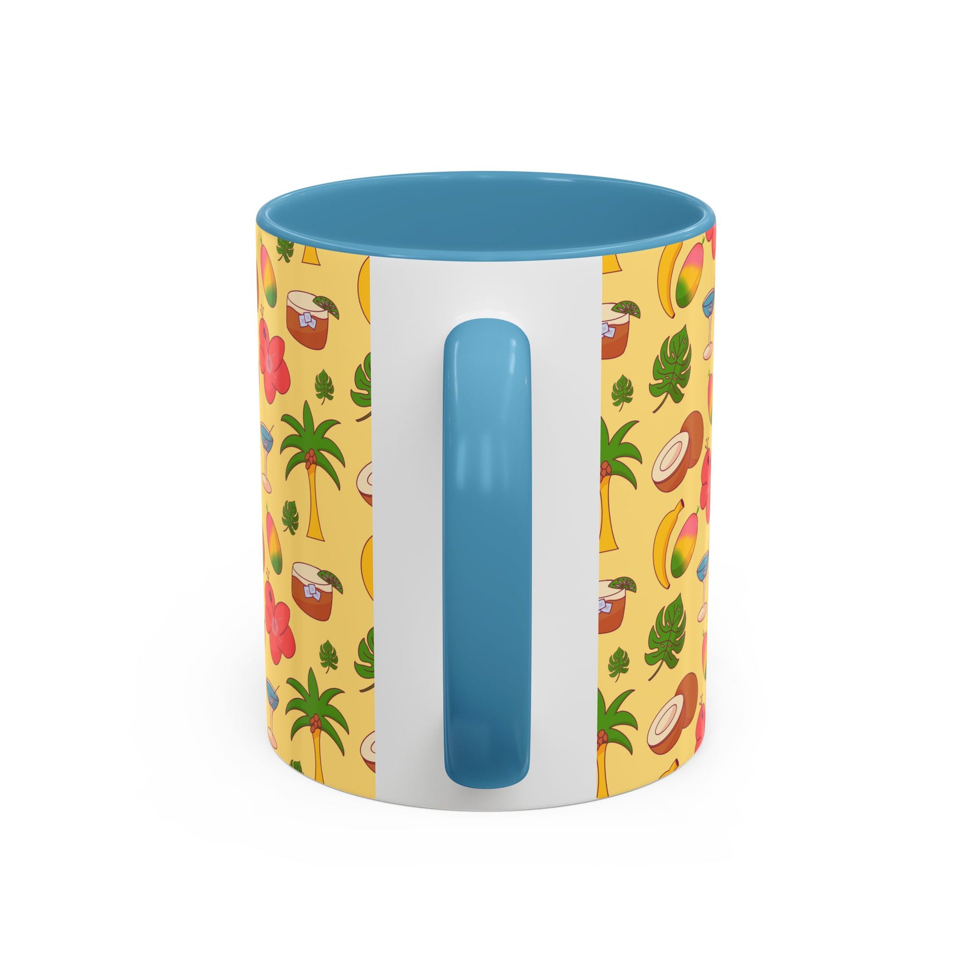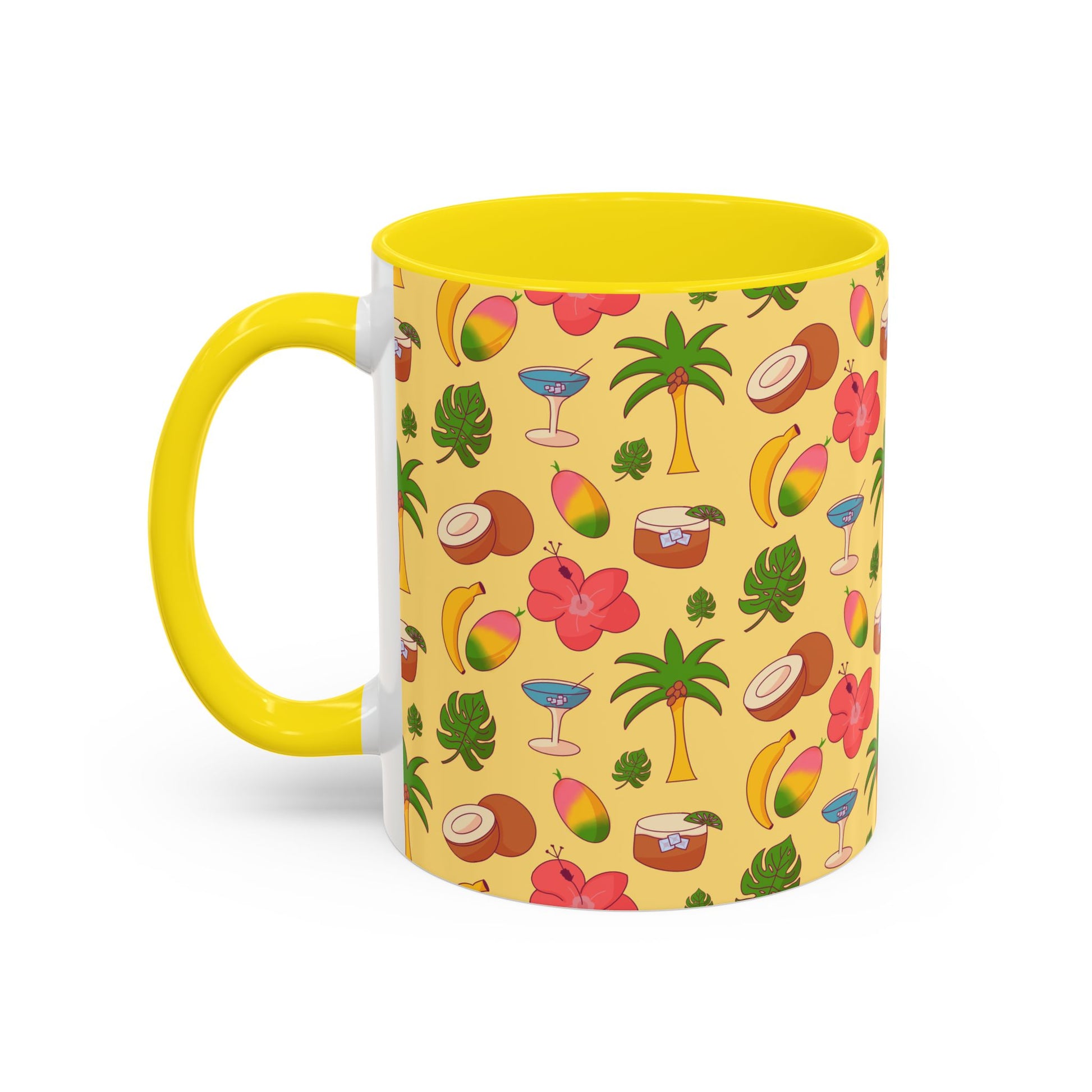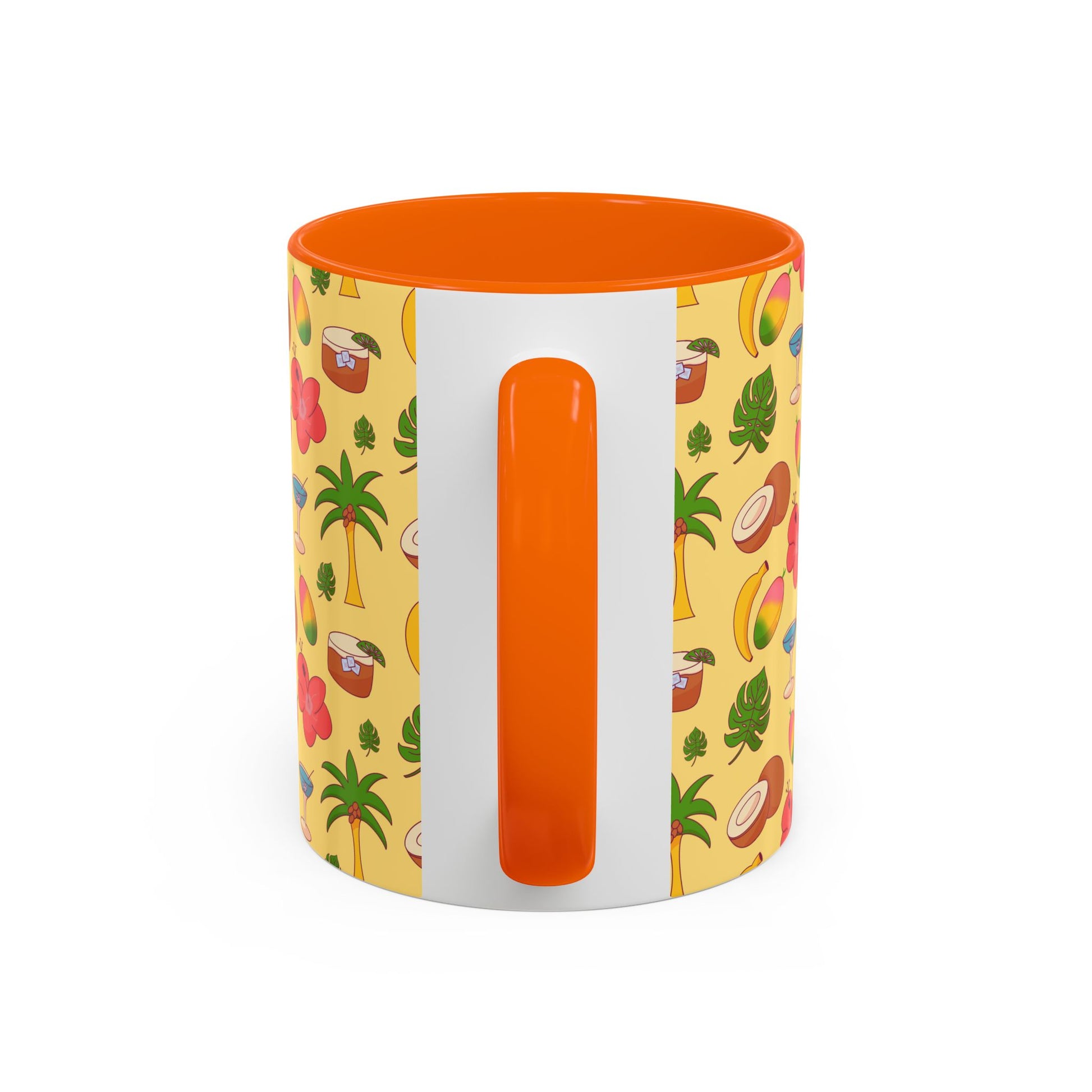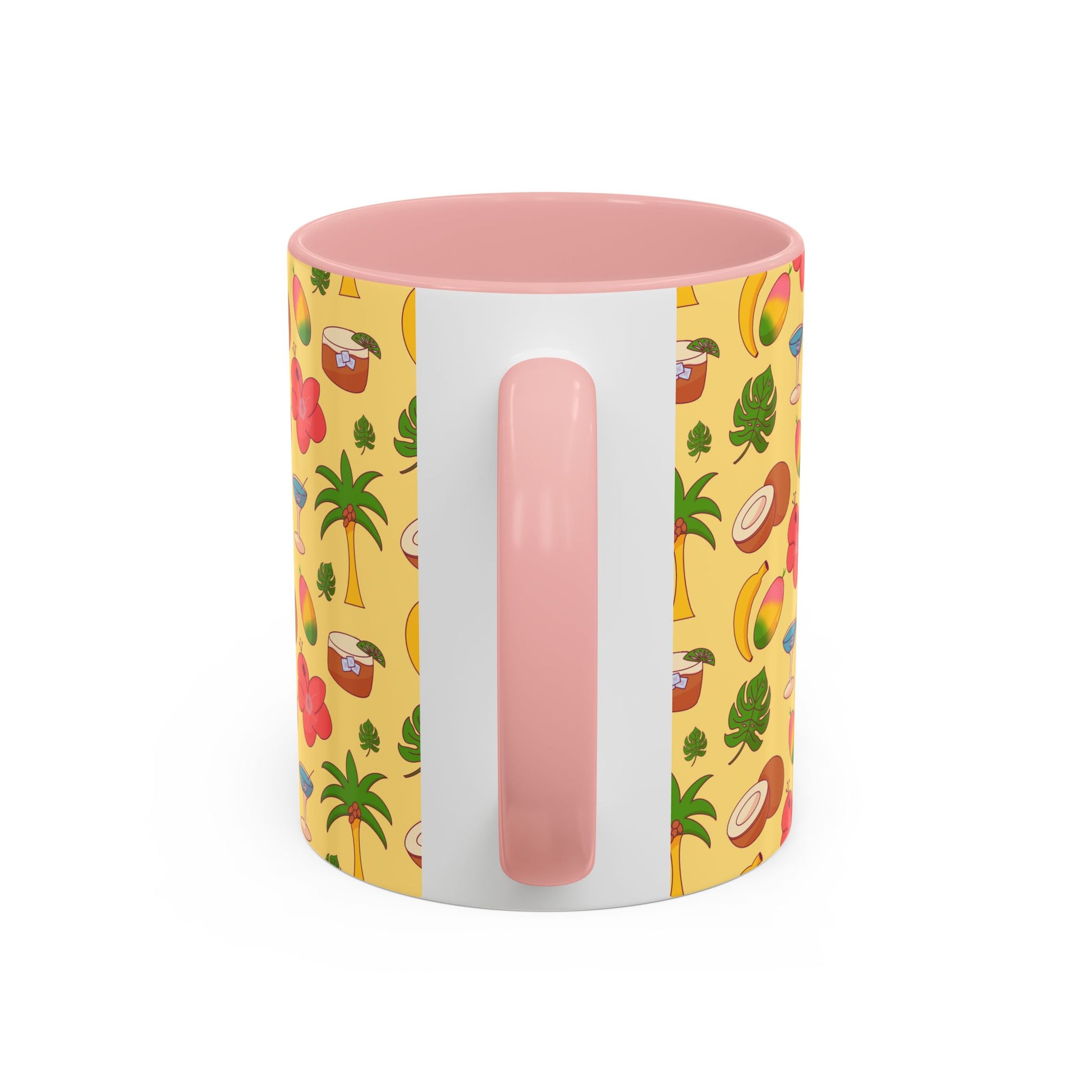 Tropical Pattern Coffee Mug — Pink Accent Beach Fruit & Palm Design (11oz)